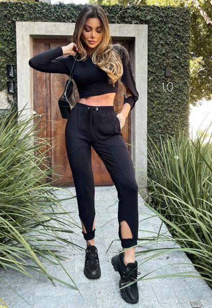 Conjunto de Top Cropped Preto