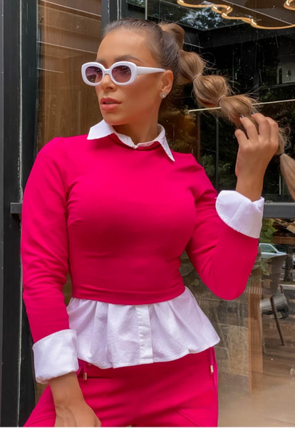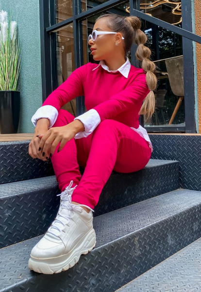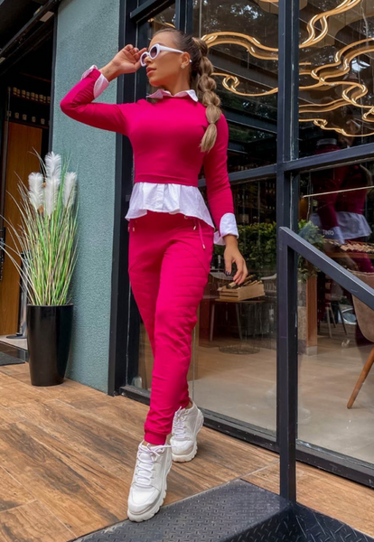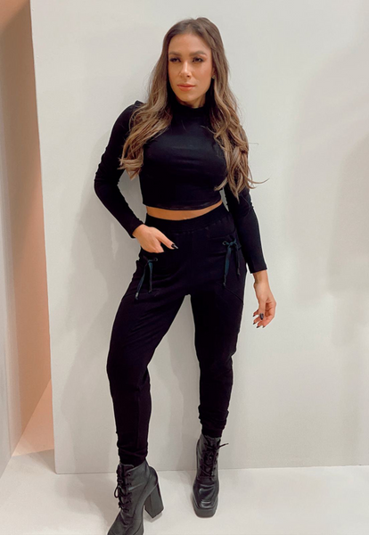 Lindo e super confortável conjunto de moletom com gola alta e calça jogger com elástico na cintura.